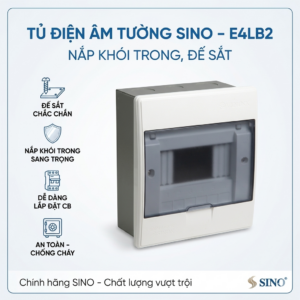 Tủ điện âm tường SINO – E4M và E4MS 3/6T nắp trắng, đế sắt